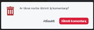 Patvirtinti veiksmą paspaudus Ištrinti komentarą