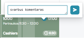 Komentaras išsaugomas sistemoje ir atvaizduojamas kitiems darbo grafiko administratoriams.