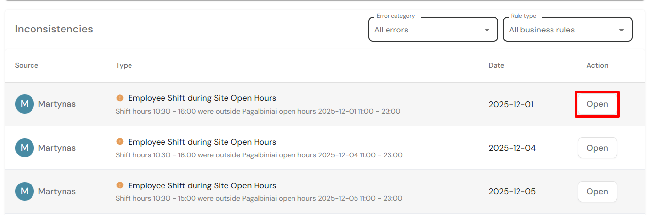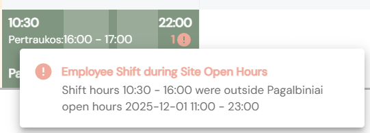 - Important - errors that show employee preferences or work agreement inconsistencies (e.g. required employee count in the workplace)
